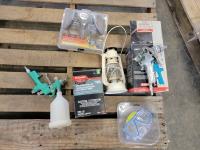 Lantern, (2) paint sprayers, mask, fiberglass repair kit