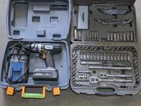 Aladdin Portable 7800 BTU Kerosene Fired Heater, Large Quantity of Sockets, Ratchets, End Wrenches, Screwdrivers, Cutters, Plyers, Hand Drills, HURRI-HOT Hot water Heater 50,000 BTU, 18V Circular Saw with Battery & Guide<br/>