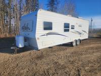 fridge, stove, microwave (inoperable), dinette, couch, triple bunkbeds, front queen room, bathroom, awing, outdoor shower, 235/75R15 tires