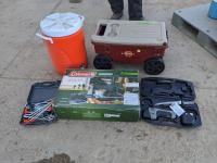 143 Water Cooler, 4 Wheel Garden Wagon, Coleman Stove, Cordless Knife