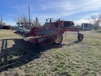 Macdon PW7 14 ft pick-up header, variable speed reel, auto header height, fore & aft, reverser, lateral tilt, rock trap, yield & moisture, chaff spreader, fine cut chopper, grain tank extensions, A/C, upgraded stereo, air ride seat, buddy seat, 900/60R32 front tires, 600/65R28 rear tires