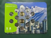 Twelve Vancouver 25 cent circulation sport coins and two Lucky Loonies