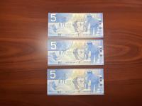 Set of three 2002 five dollar bills.