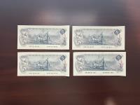 Set of four 1979 five dollar bills.