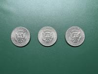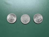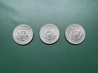 Set of three U. S half dollar silver coins. 1971, 1972, 1973
