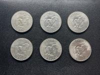 Set of six U. S siler dollar coins