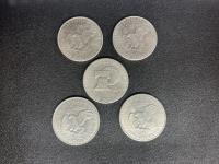 Set of five 1967 Silver Dollar Canadian coins.