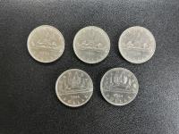 Set of five Canadian silver dollars