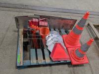 Metal wide load signs, collapsible caution cones, qty of flares, emergency triangles