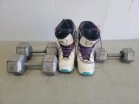 Golf bags, sports gear and balls, roller blades, boots