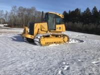 John Deere 6 cylinder diesel engine, hydro transmission, S-bar, Webasto, enclosed cab, heat, A/C, air seat, 34 inch track pads, rear triple hydraulics, 154 inch push/angle/tilt PAT blade (from JD 850), canopy and sweeps with hardware (not installed)