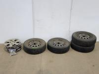 1309 (4) 14 Inch Tires with Four Bolt Rims and (4) Kia Hub Caps