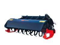 72 inch width, overall width 80 inches, 18 inch x 8.5 inch Polyurethane tires, 88 carbide tipped teeth, recommended hydraulic flow 15 to 33 GPM, 1100 lb, hydraulic power angling, wing kit, pistol grip control harness, loader specific wire harness, factory installed couplers