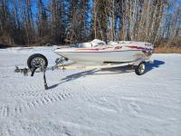 Mercury 120 HP sport jet motor, open bow, S/A trailer, spare tire, 4.80-12 tires