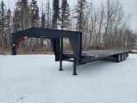 31 ft long x 11 Ft 6 inch wide center deck, 48 inch hydraulic neck extension, swing out deck extenders, swing out marker lights beavertail, air ride suspension, plumbed for booster, 275/70R22.5 tires, air brakes, hydraulic power pack with electric start gas engine,