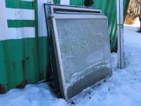 (5) 64 inch x 58 inch windows, (2) 64 inch x 60 inch screens, 65 inch x 62 inch glass, (2) aluminum tracking frames 116 inch x 65 inch
