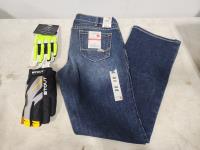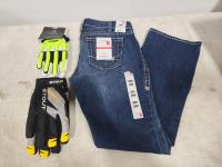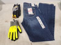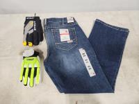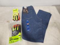 Jeans size 34R, Stout and Mechanix size med gloves