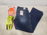 2064 Men's Carhartt FR Work Jeans and (2) Pairs of Gloves (Unused)
