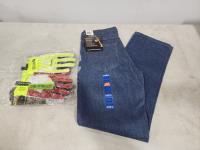 Jeans size 34R, Stout size small and med gloves