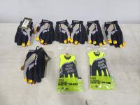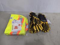 safety vest, (3) Drill Sargent large gloves, (1) Drill Sargent XL gloves
