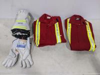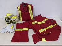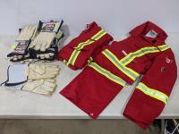 2015 (2) Size 36T FR Red Coveralls with Reflective Striping and (6) Pairs of Stout Size Medium Gloves (Unused)