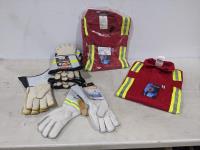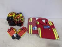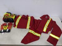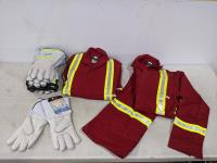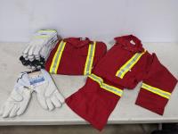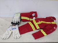 2017 (2) Size 54R FR Red Coveralls with Reflective Striping and (7) Pairs of Gloves (Unused)