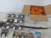 (2) 5 inch dome lenses, (11) 6-1/2 inch x 4 inch sealed light unit, (39±) wiring harnesses, (6) flasher unit kits, (3) diesel starting system kits