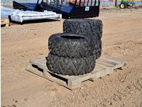 Enclosed cab, A/C, air ride seat, powershift transmission, 4 In 1 bucket, 92 inch loader bucket, 24 inch dig backhoe bucket, 1 rear auxiliary hydraulics, stick, outriggers, 12.5/80-18 front tires, 21L-24 rear tires