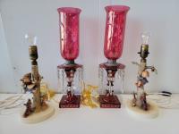 (2) hummel lamps, (2) antique cranberry glass lamps