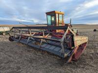 1979 Versatile 400 center delivery rigid draper header, batt reel, crop dividers, Ford 6 cylinder diesel engine, 11.2/10-24 front tires, 7.6-15SL rear tires