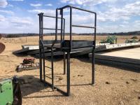 Air over hydraulic brakes, Recently installed new floor, Recently installed 4x8 sheet of aluminum checker plate for anti-slip entry, 4 compartments. Capability to load new born/yearling calves in nose. Calf crib above hitch. Holds approximately. 22-25 cows or 50x 650 lb. calves. Center trap door for easy cleanout, Lights and brakes all work. Crossmembers are spaced 16 inches apart and still in good condition with some surface rust. This unit was sandblasted and painted within the last 10 years.