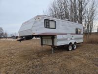 stove, fridge, microwave, full bath, master bedroom, A/C, 2 slides, power awning, spring suspension, electric brakes, 225/75R15 tires