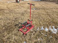 6 inch vise, qty of shelf brackets, (3) snowmobile dollies, tow hook, Qty of 1.5 inch roofing screws, set of cable tire chains, (2) ball hitches