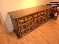 (1) dresser 32 inch L X 17 inch D X 40 inch H, (1) dresser 38 inch L X 17 inch D X 36 inch H, shelf unit 22 inch L X 11 inch D X 23 inch H
