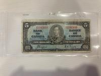 1023 1937 Canadian Five Dollar Bill