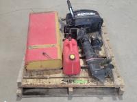 1308 Mercury 4 HP Outboard Motor, Propeller, Gas Can and Jerry Can