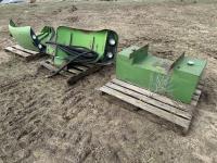 John Deere 673 loader, Q/A, 88 inch bucket, grapple, mid mount hydraulic connection, John Deere 4.5 4 cylinder 120 HP, diesel engine, 90 PTO HP, 24 speed partial power shift transmission, cab, ROPS, left hand reverser, joystick, A/C, radio, air ride seat, 540/1000 PTO, 3 point hitch, 3 rear hydraulic outlets, rear wheel weights, 340/85R28 front tires, 460/85R38 rear tires