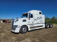 Cummins X15 565 HP diesel engine, Wabasto engine heater, engine brake, 18 speed transmission, mid rise 52 inch sleeper, A/C, leather interior, air ride driver seat, stereo, ACE headache rack, tool boxes, beacons, air ride suspension, 16,000 lb front axle, 46,000 lb rear axles, full lockers, all aluminum wheels, 11R24.5 rear tires