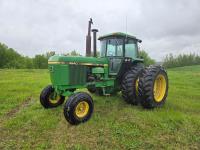 John Deere 8.1 L 6 cylinder 175 HP, diesel engine, 150 PTO HP, 20 speed Auto Quad partial power shift transmission, cab, left hand reverser, rear differential lock, A/C, radio, upgraded stereo, air ride seat, 1000 front PTO, 1 front hydraulic outlets, front Q/A 3 point hitch, 540E / 540/1000 PTO, 3 point hitch, 3 point hitch exterior control, 3 rear hydraulic outlets, 540/65R30 front tires, 650/65R24 rear tires