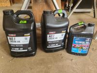 2.5 gallon of 10w-30, 2.5 gallon of 15w-40 & concentrated diesel antifreeze