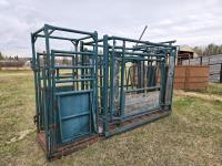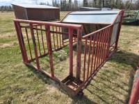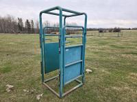 auto catch head gate, dual exit sides, scale with digital scale head, metal floor and platform