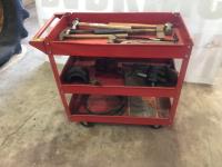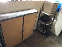 one with 4 drawer cabinet, one with aluminum peg board, 53 inches x 29 inches