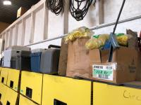 underlay, CD's, roller blades - size 41 (Euro), (2) bike helmets, weight scales, Swiffer, brooms, balloons, VHS/CD player, cordless drill, ratchet, small shoes size 12 (kids)