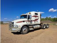 Mack MACK 505 HP diesel engine, Maxxitorque 18 speed transmission, high rise 48 inch sleeper, fridge, A/C, cruise control, leather interior, air ride seats, 2-way radio, stereo, moose bumper, headache rack, tool boxes, air scales, lift axle, air ride suspension, full lockers, 264 inch WB, all aluminum wheels, 315/80R22.5 front tires, 11R24.5 rear tires