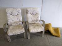 (6) Dining Chairs<br/>(2) Rocking Chairs<br/>(1) Stool<br/>Wooden Bench 36" X 11" X 16" High<br/>Ottoman 17" X 17" X 18"