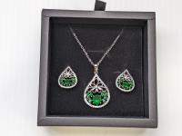 5440 Smartlife Platinum Plated 2 Piece Emerald Teardrop Set (Unused)