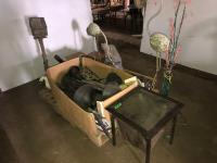 (3) Folding Chairs<br/>Ornamental Garden Clock<br/>(2) Ornamental Garden Plastic Trees<br/>(10) Bamboo Torch Holders