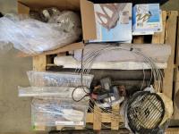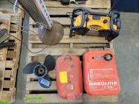 Boat bumpers, chains, carbon zinc battery, air ducts, wire mesh, submersible pump with float switch, sockets, 5 gallon oil reservoir, dust bag