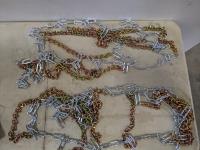 Chains, briquettes, nails, 4 inch straps, shelving panels, wire, metal cable, 14 inch grinding wheels, rope, bungee cords, cine-elevating tripod