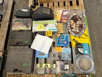 Body molding, clamps, dent-puller, split flex tubing, hydraulic filter, transfer pump, collated nails, adjustable wrench, tape measurers, electrical wire, anti-freeze testers